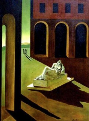 El pintor italiano Giogio de Chirico es el máximo representante de la conocida como pintura metafísica. En buena parte de sus obras destaca un uso muy personal del espacio del paisaje, que unos años más tarde servirían de amplia inspiración para el grupo de pintores surrealistas liderados por André Bretón.
